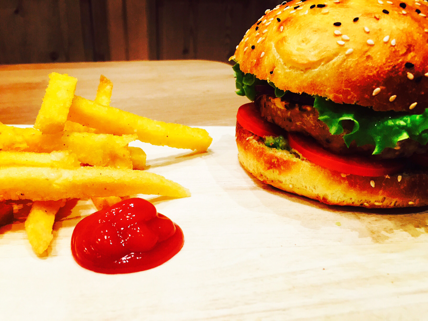Burger-steak-lentilles-céréales-frites-de-polenta