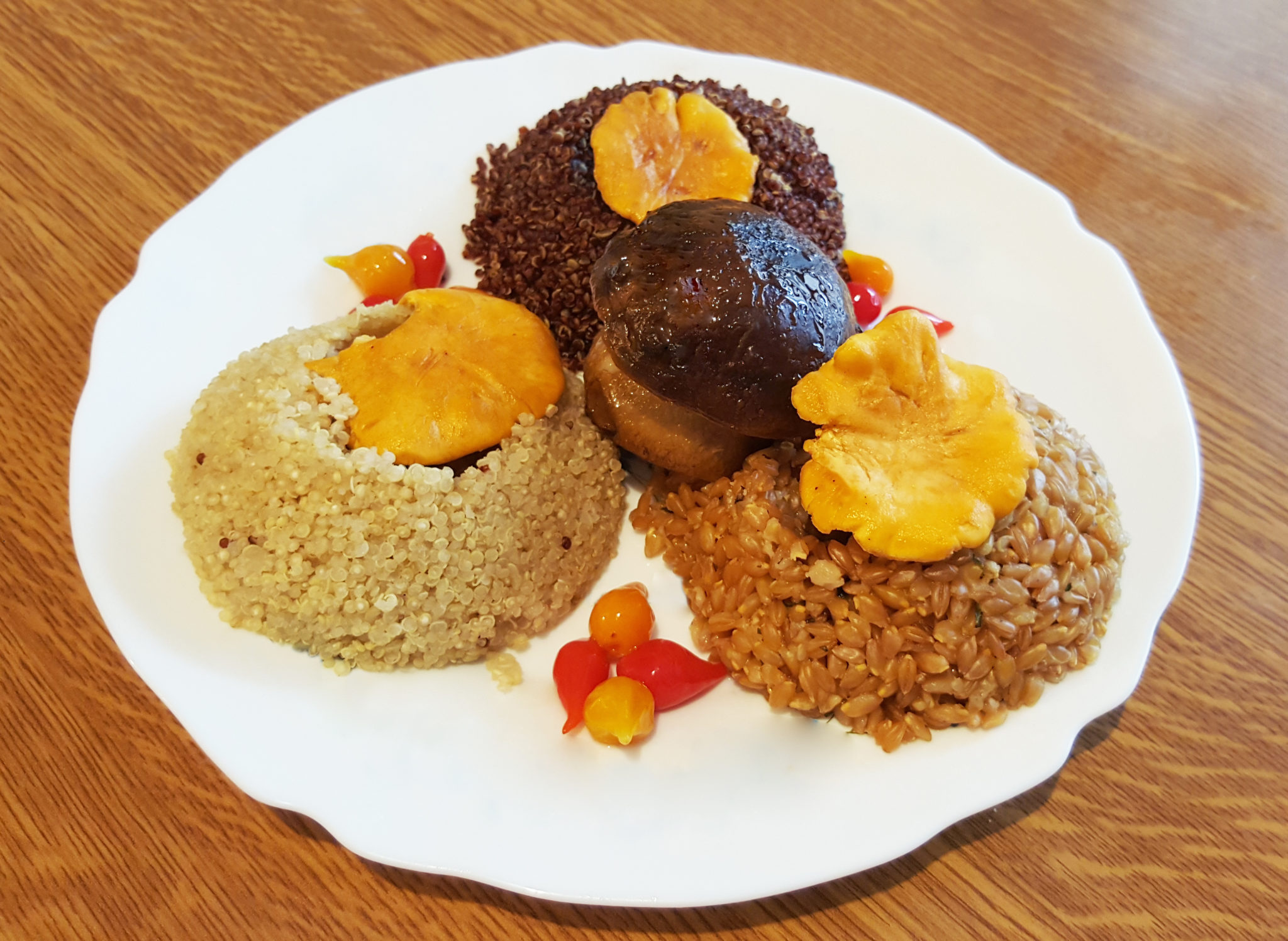 Quinoa épeautre cèpe girolle gouttes poivrons